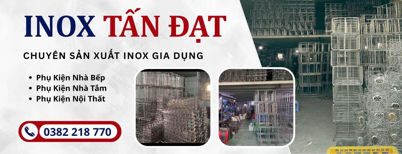 Inox Tấn Đạt là đơn vị chuyên sản xuất và gia công các sản phẩm inox gia dụng tại TP.HCM, với định hướng phát triển lâu dài dựa trên chất lượng sản phẩm và uy tín trong từng đơn hàng. Chúng tôi tập trung vào hai dòng vật liệu chính là inox 201 và inox 304, cung cấp đa dạng sản phẩm phục vụ cho nhu cầu dân dụng và kinh doanh như: kệ inox, giá treo, đồ gia dụng nhà bếp, cũng như nhận gia công inox theo yêu cầu riêng của từng khách hàng.
